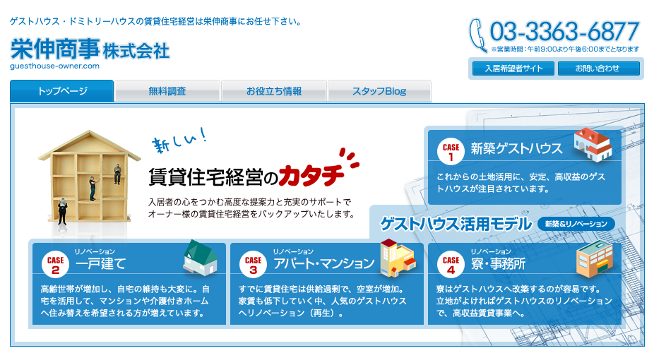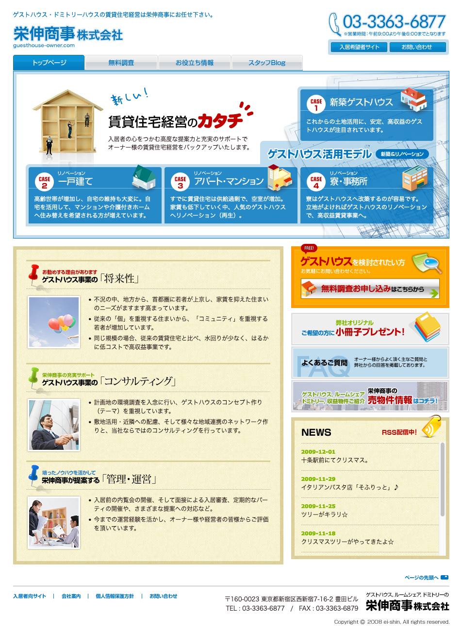 栄伸商事が手掛ける、ゲストハウス事業のオーナー募集サイトを制作。