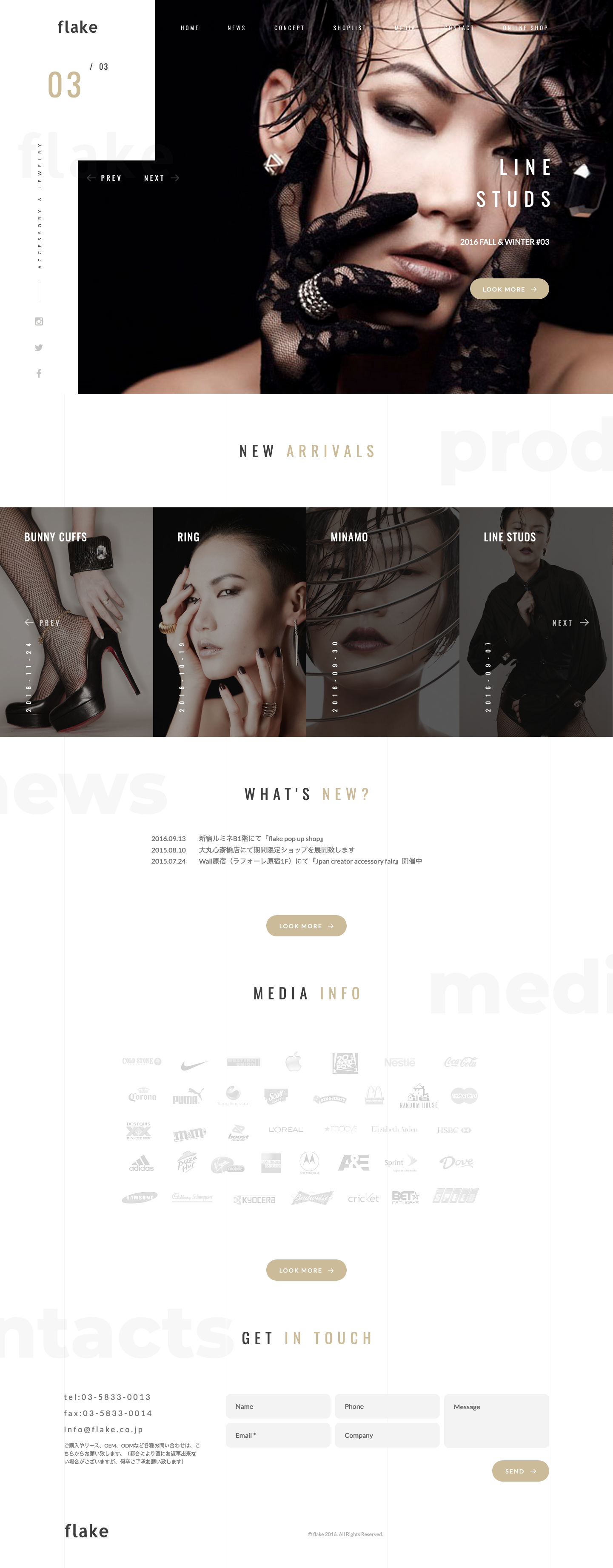 アクセサリー&ジュエリーブランド「flake」の公式サイトを制作。
