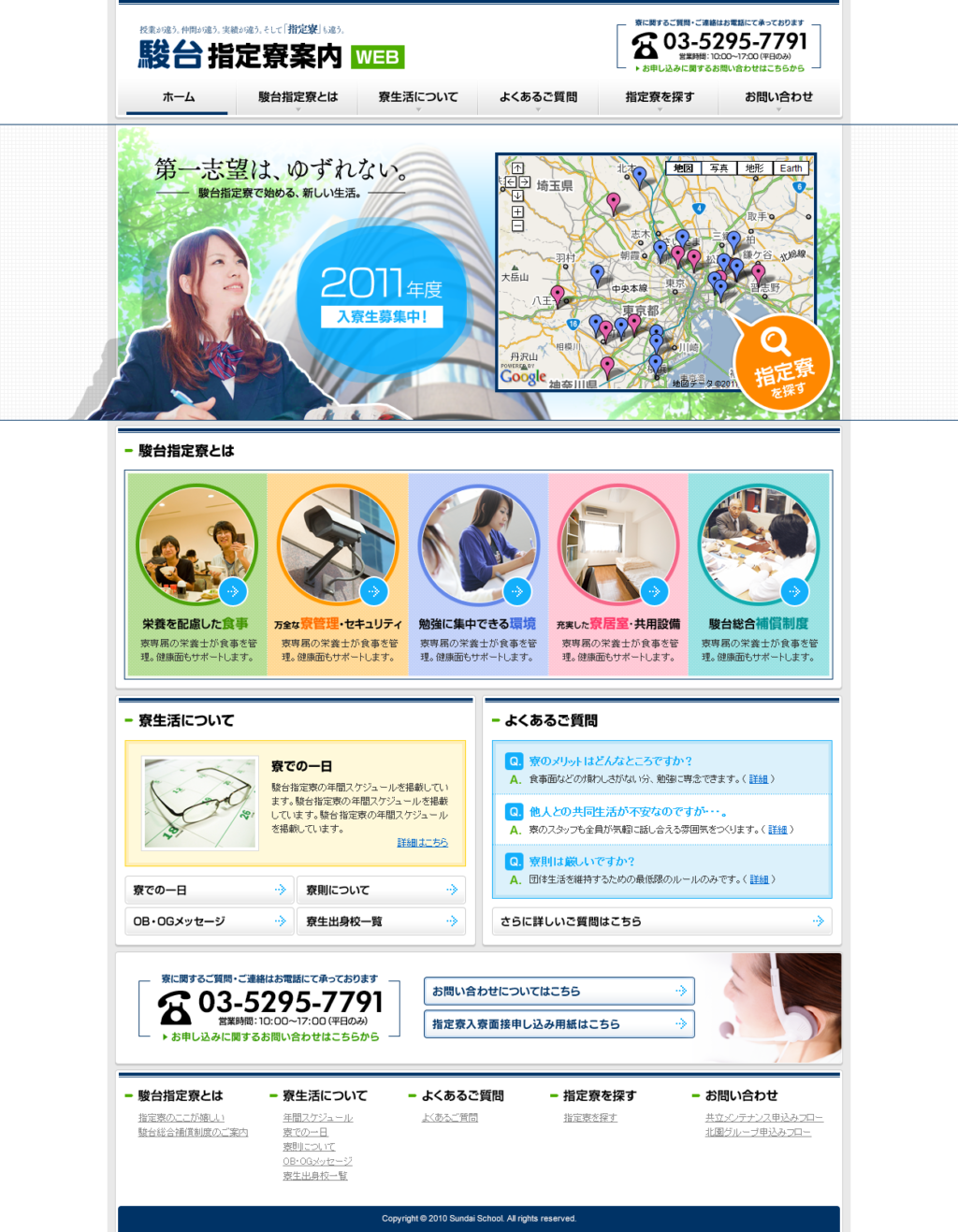 駿台予備学校 指定寮案内 駿台予備校の公式指定寮案内サイトを制作。 学生の方、そして保護者の方々にも安心していただけるよう、寮に関するあらゆる情報をサイト上でスムーズにチェックするための導線づくりに注力しました。 クライアント 株式会社共立メンテナンス様 制作時期 2011年1月 制作期間 2ヶ月 担当工程 要件定義、構造設計、情報設計、デザイン、コーディング、CMS構築 使用ツール・技術 PhotoShop / Illustrator / 不動産CMS / JavaScript / CSS / HTML 2011年1月 投稿先 ウェブサイト ← 過去の投稿へ 次の投稿へ →